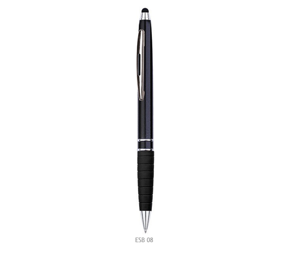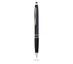 Czarny korpus i gumka, metalowy klip, gumowy rysik do ekranów dotykowych.