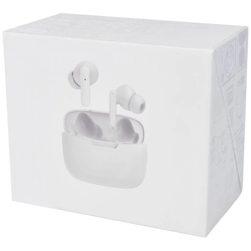 Słynne słuchawki douszne Essos w odświeżonej wersji 2.0! Całkowicie nowa konstrukcja z naciskiem na tę samą jakość. Słuchawki douszne wyposażone są w łączność Bluetooth® 5.3, automatyczne parowanie i automatyczne włączanie. Zintegrowane z funkcją klarowności, która wzmocni dźwięk otaczający Cię z zewnątrz dzięki wbudowanemu programowi, umożliwiającemu orientację w otoczeniu podczas noszenia słuchawek dousznych. Możliwe jest nawet komunikowanie się z ludźmi bez wyjmowania słuchawek dousznych. Po naładowaniu znajdującego się w obudowie akumulatora o pojemności 300 mAh, rozładowane słuchawki będzie można trzykrotnie naładować do pełna. Dzięki możliwości odtwarzania utworów do 3 godzin przy maksymalnej głośności na jednym ładowaniu, słuchawki te są niezbędne dla każdego podróżnego. Słuchawki douszne umożliwiają szybkie ładowanie. Tylko 10 minut ładowania zapewnia ponad 60 minut odtwarzania przy maksymalnej głośności! Ergonomiczna konstrukcja słuchawek dousznych sprawia, że utrzymują się one stabilnie w miejscu podczas podróży. Wbudowana funkcja sterowania odtwarzaniem i dwa mikrofony umożliwiają obsługę głosową. Obudowa może zostać naładowana w czasie poniżej 1,5 godziny. Obsługuje Siri i Google Assistant. Zasięg łączności Bluetooth® wynosi do 10 metrów. Sprzedawane w pudełku upominkowym premium wykonanym z materiału z recyklingu.