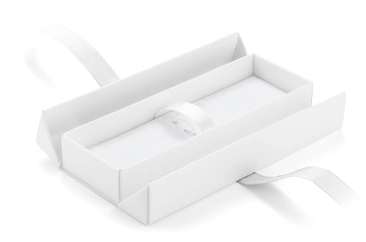 Etui do pakowania artykułów piśmienniczych wykonane z papieru. Zamykane za pomocą wstążki, którą można zawiązać w ozdobną kokardę.