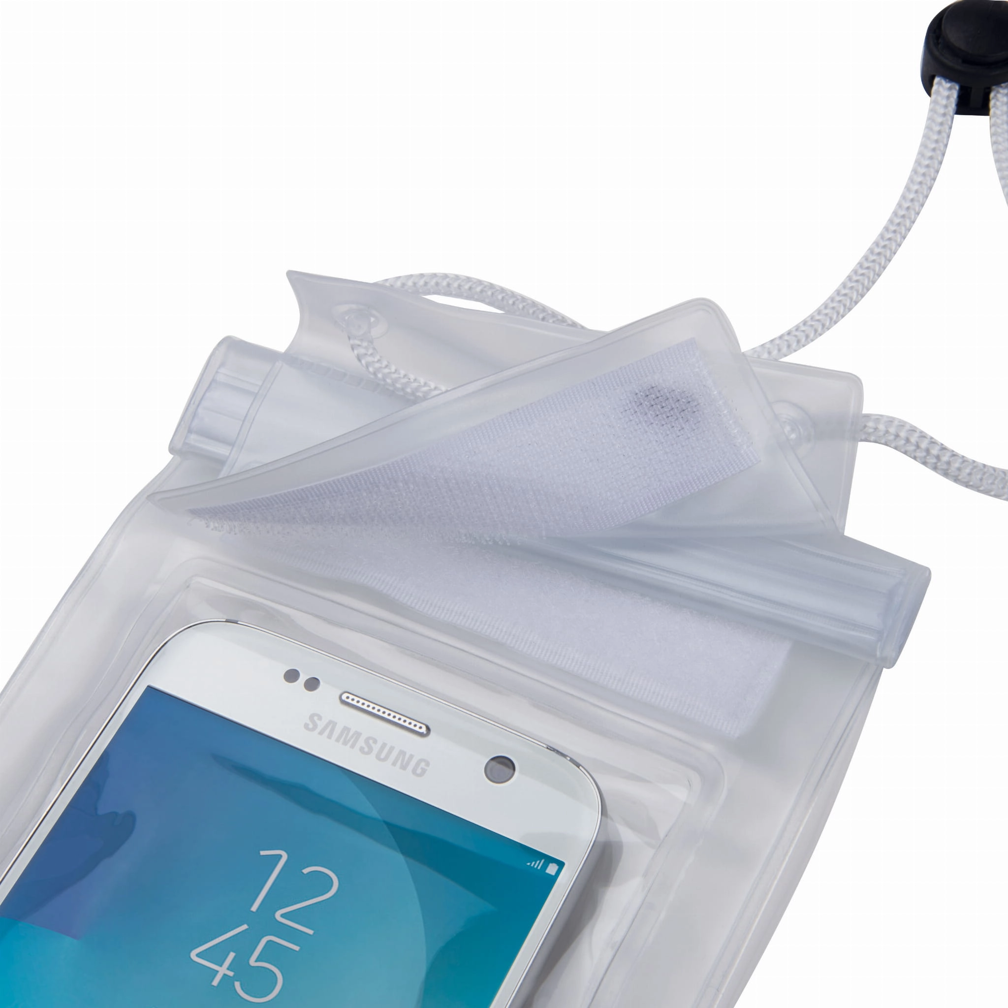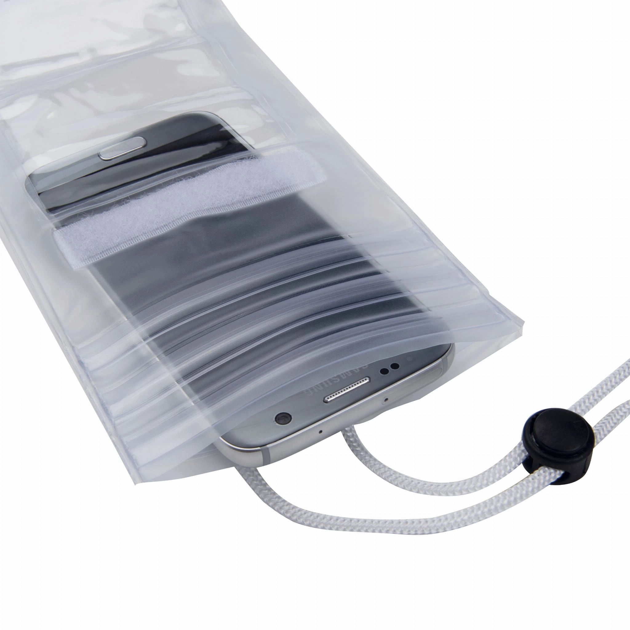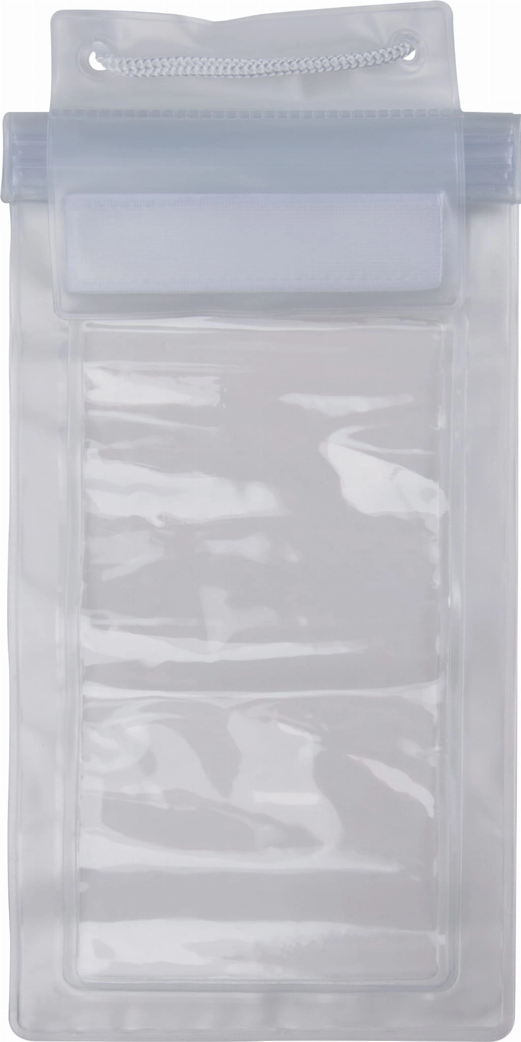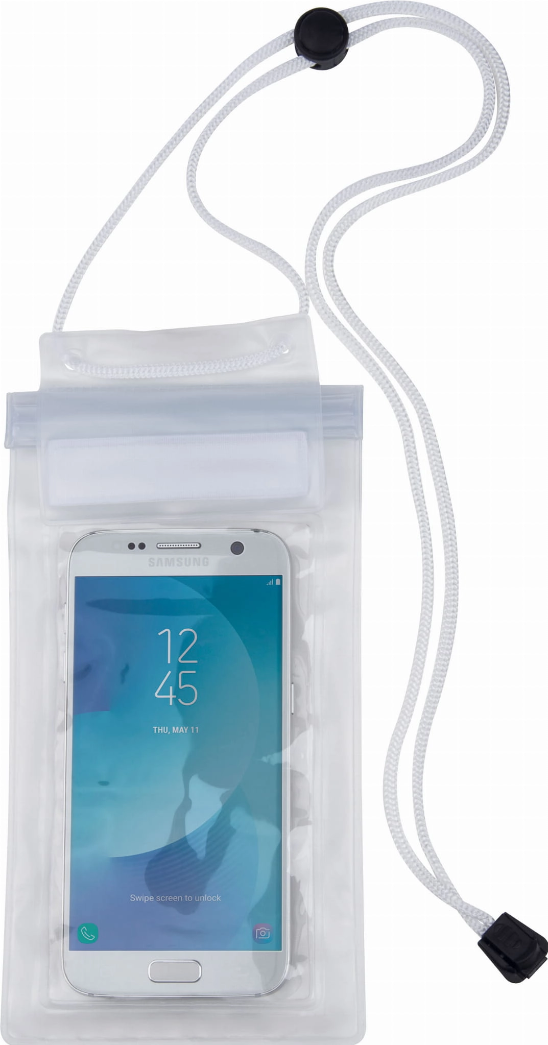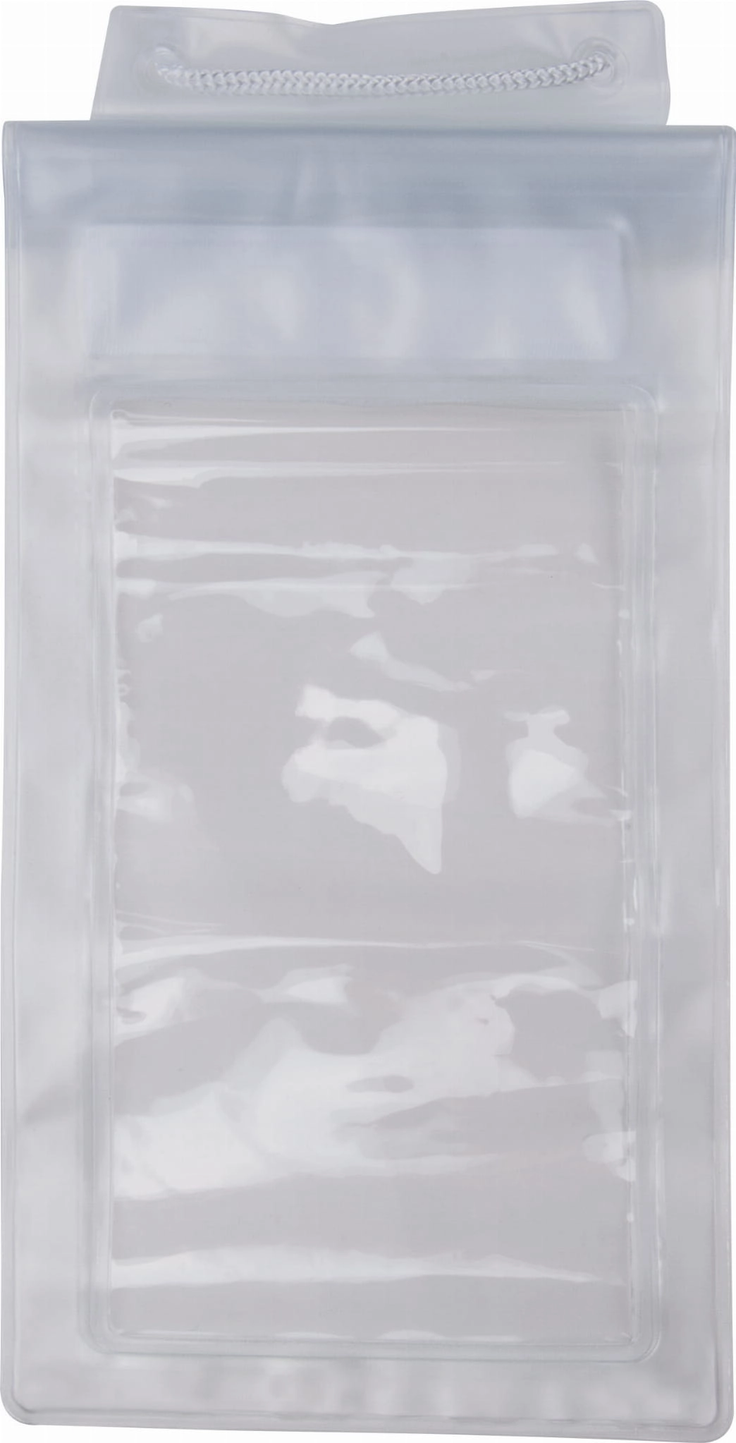 Etui na telefon z PVC, szczelnie zamykane, na sznurku. Pakowane w folijkę.