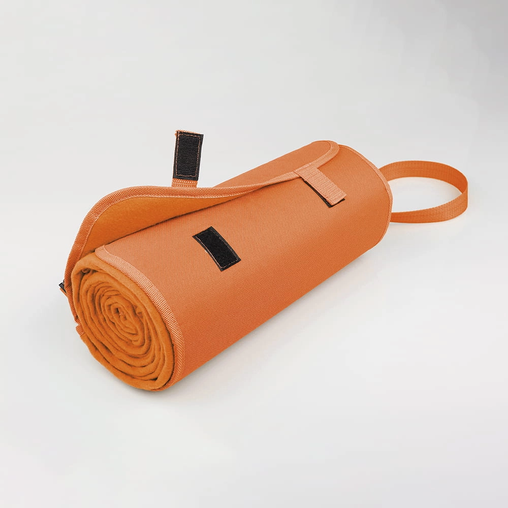 Składany koc z polaru na rzep z oczkiem do przyczepienia oraz paskiem na ramię, wodoodporny od spodu (poliester), 160 g/m2.