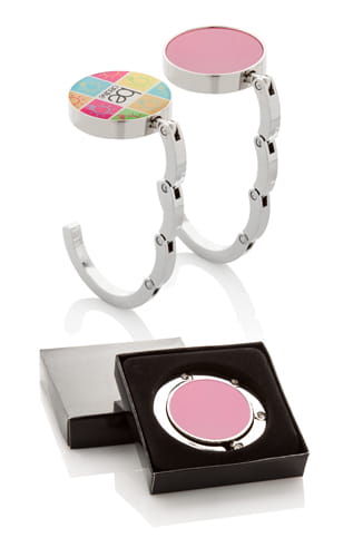 Składany, metalowy wieszak na torbę.