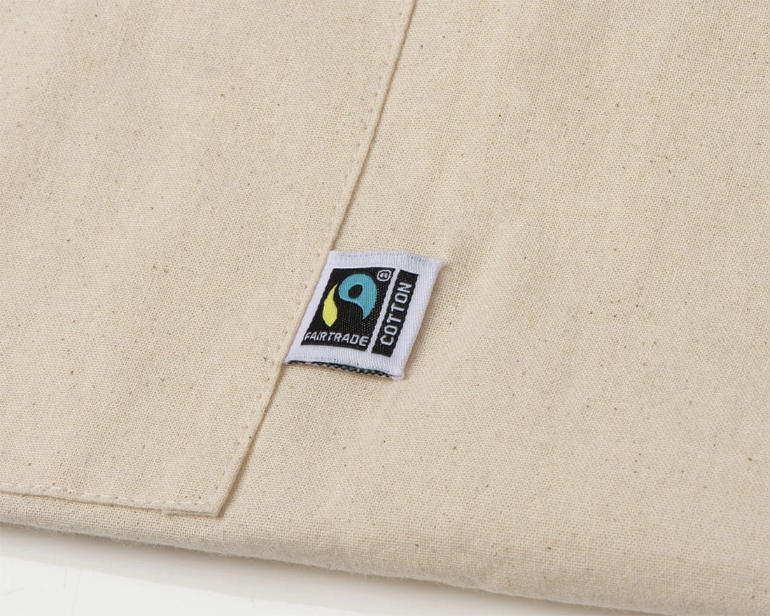Fartuch wykonany z bawełny 180 g/m?, z certyfikatem Fair Trade.