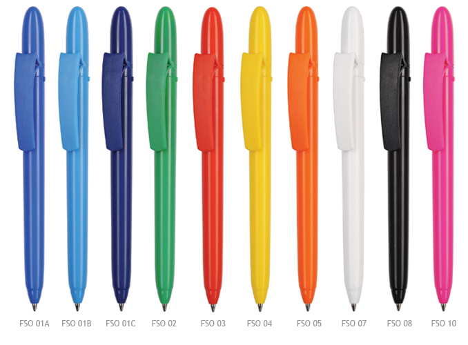 Długopis z mechanizmem obrotowym, kolorowy nieprzeźroczysty klip i korpus.