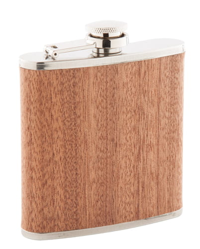 Piersiówka ze stali nierdzewnej z drewnianą nakładką, 170 ml.