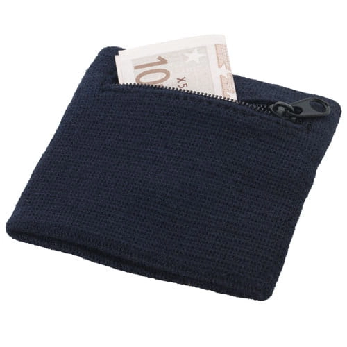 Frotka pochłaniająca pot Brisky z kieszonką na zamek. Wygodna opaska na nadgarstek z kieszenią na zamek błyskawiczny, aby bezpiecznie trzymać pieniądze podczas uprawiania sportu, robienia zakupów czy też podczas podróży. Bawełna.