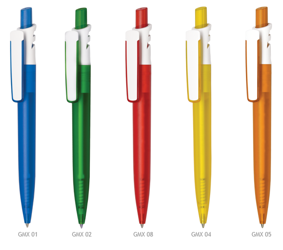 Biały pełny klip, kolorowa transparentna nakładka, przycisk i korpus.