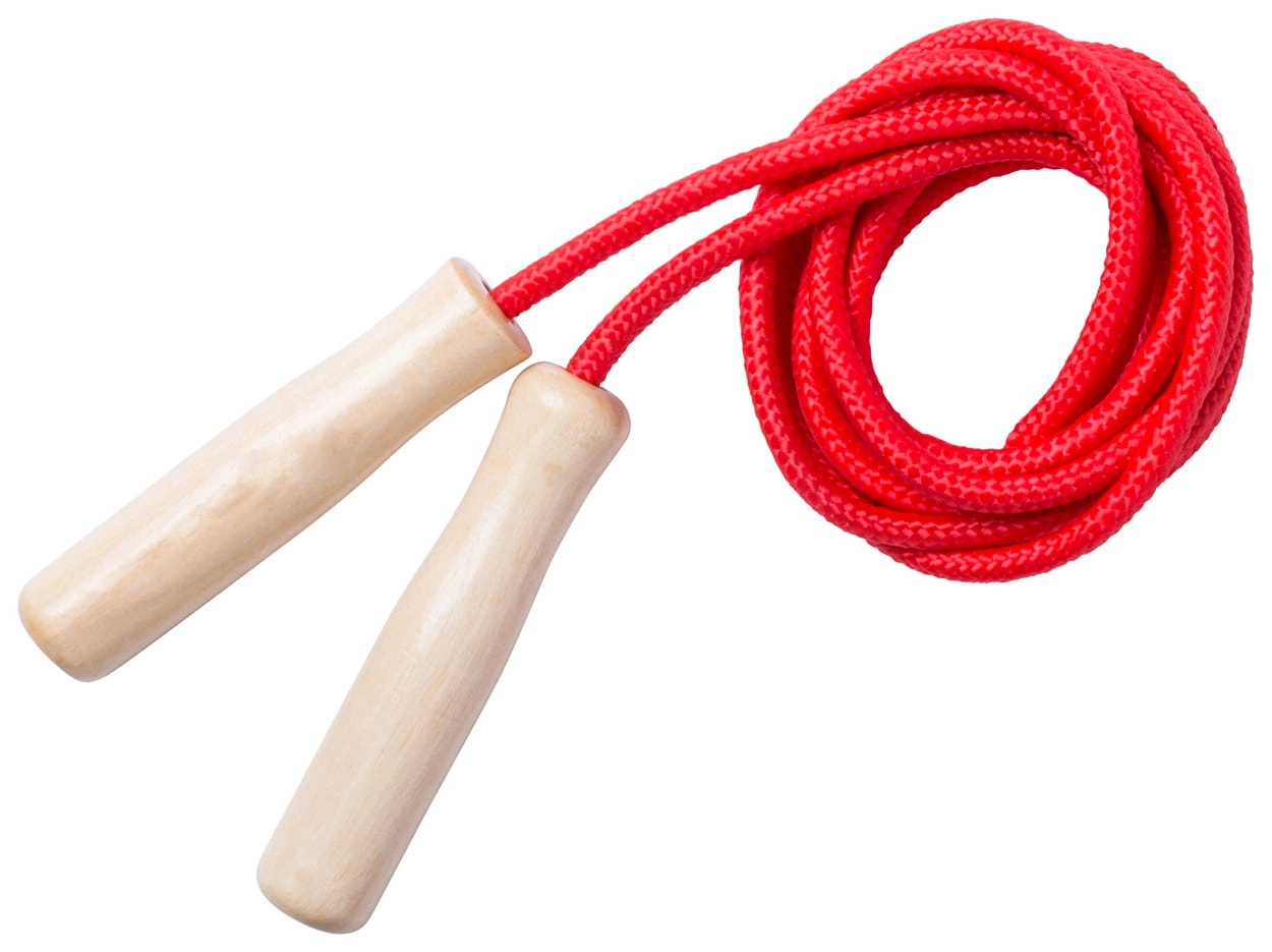 Skakanka z drewnianymi uchwytami.