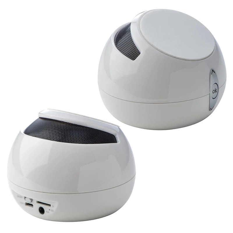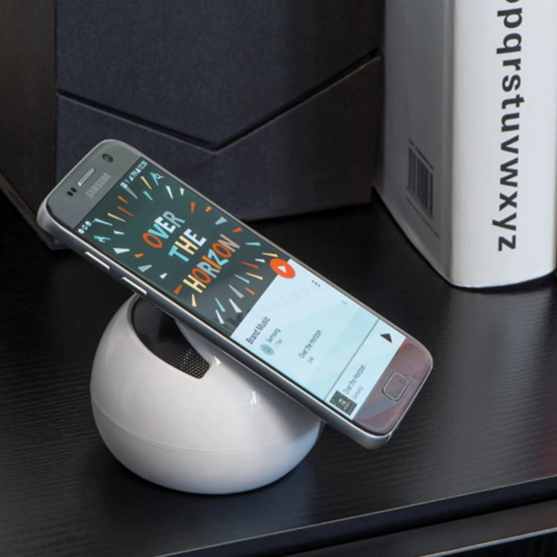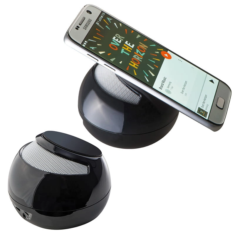 Głośnik Bluetooth z powierzchnią antypoślizgową, która umożliwia umieszczenie głośnika niemal na każdej powierzchni oraz położenie telefonu lub tabletu na górnej części urządzenia. Bluetooth 3.0, wejście Micro SD card, radio FM oraz regulator głośności. Kabel do ładowania Micro USB w zestawie. Logo zostanie umieszczone na głośniku.