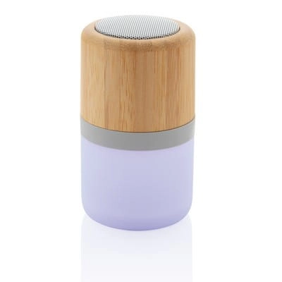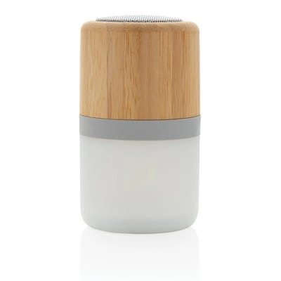 Głośnik bezprzewodowy 3W, BT 5.0, zmieniająca kolor lampka, 4 tryby świecenia, górna część obudowy wykonana z bambusa, wbudowany akumulator o pojemności 400 mAh umożliwia w zależności od używania odtwarzanie muzyki do 3 godzin, kabel micro USB bez dodatku PVC, w komplecie