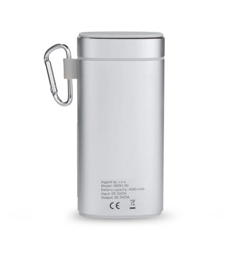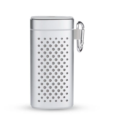 Elegancki głośnik bezprzewodowy z power bankiem o pojemności 4000 mAh to świetny podarunek dla gadżeciarzy. Wykonany jest z metalu, co sprawia, że jest trwały, a wygrawerowane logo będzie się świetnie prezentować. Możliwość wykorzystania głośnika jako zestawu głośnomówiącego. Odtwarzanie muzyki jest możliwe za pośrednictwem bluetooth (wersja 4.2), kabla audio jack 3,5 mm (niedołączony) lub karty micro SD. Ponadto, posiada klasę wodoszczelności IPX4, czyli całkowitą ochronę przed spryskiwaniem i zachlapaniem wodą z różnych kierunków z natężeniem do 10 litrów na minutę. Świetnie nadaje się do użytku turystycznego i na co dzień np. przy lekkim deszczu. Produkt jest zgodny z odpowiednimi dyrektywami Unii Europejskiej, posiada znak CE oraz 1 rok gwarancji. W zestawie kabel do ładowania z końcówką microUSB i karabińczyk. Dane techniczne: - wejście: 5V/1A, - wyjście: 5V/2A, - bateria litowo-polimerowa, moc wyjściowa: 5W x 1, efekt 3D stereo i podbicie basów, Napięcie: 5V Stosunek S/N: ? 80 dB, czas pracy: 10-15 godzin