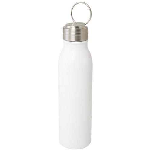 Jednościenna butelka na wodę ze stali nierdzewnej z certyfikatem RCS z zakręcaną, odporną na rozlanie pokrywką i wytrzymałym uchwytem do przenoszenia wykonanym ze stopu cynku. Nie zawiera BPA, przetestowana i zatwierdzona zgodnie z niemieckimi przepisami dotyczącymi bezpieczeństwa żywności (LFGB). Przetestowana i zatwierdzona pod kątem zawartości ftalanów zgodnie z przepisami REACH. Pasuje do większości standardowych uchwytów samochodowych. Pojemność 700 ml. Zalecane mycie ręczne. Zapakowana w pudełko upominkowe wykonane z kartonu z recyklingu.