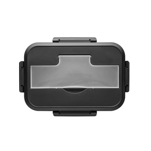 Pudełko hermetyczne PP o pojemności do 1000 mL. Pokrywka posiada przegródkę na sztućce (w zestawie). Pudełko nadaje się do kuchenki mikrofalowej, pokrywkę należy zdjąć. Nie zalecany do płynów