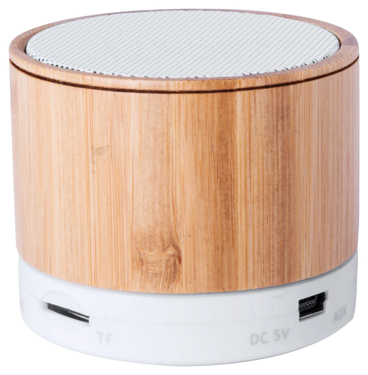 Głośnik Bluetooth w bambusowej obudowie z funkcją rozmów głośnomówiących, radiem FM i wbudowanym akumulatorem. W zestawie kabel USB do ładowania.