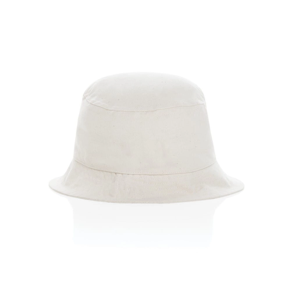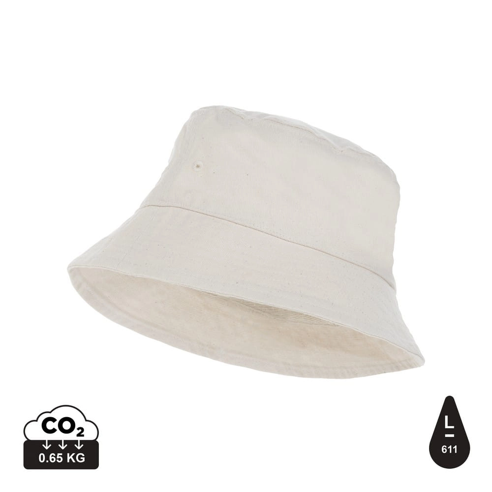 Płócienny kapelusz typu bucket, 285g/m2, niebarwiony, wykonany w 30% z poliestru i 70% z bawełny pochodzących z recyklingu, dzięki wykorzystaniu materiałów z recyklingu każdy kapelusz pozwala na zaoszczędzenie nawet do 697 l wody, dzięki zastosowaniu technologii AWARE™ wykorzystane materiały są identyfikowalne z pochodzenia, 2% wpływów z każdego sprzedanego produktu z kolekcji Impact jest przekazywane na rzecz Water.org