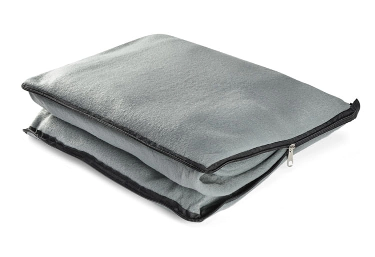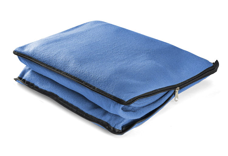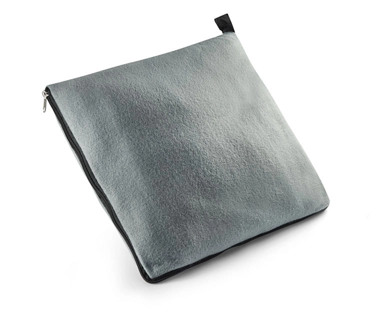 Ciepły polarowy koc wykonany z poliestru. Koc można łatwo zamienić w wygodną poduszkę - wystarczy tylko złożyć go i zapiąć za pomocą zamka błyskawicznego. Ten funkcjonalny gadżet stanie się niezbędnym elementem każdej podróży. Koc o wymiarach 172 x 123 cm po rozłożeniu. Znakowanie haftem jest możliwe, ale wyłącznie pod indywidualne zapytanie.