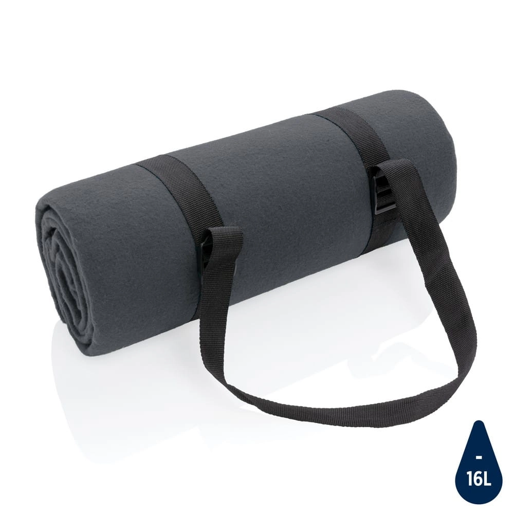 Koc piknikowy, pasek do zwijania i przenoszenia, powłoka hydrofobowa chroni przed zimnem i wilgocią, wykonany z rPET, do którego produkcji zostało ponownie wykorzystanych 27 butelek PET 0,5l oraz zaoszczędzone zostało 16 litrów wody, dzięki zastosowaniu technologii śledzącej AWARE™ wykorzystane włókna są identyfikowalne z pochodzenia, rozmiar 150x130 cm, 2% wpływów z każdego sprzedanego produktu z kolekcji Impact jest przekazywane na rzecz Water.org