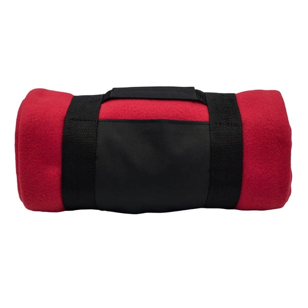 Polarowy koc o gramaturze 180 g/m? obszyty maszynowo, wyposażony w poręczny uchwyt do przenoszenia. Rozmiar po rozłożeniu: 120 x 150 cm. Doskonały na imprezy pod gołym niebem.