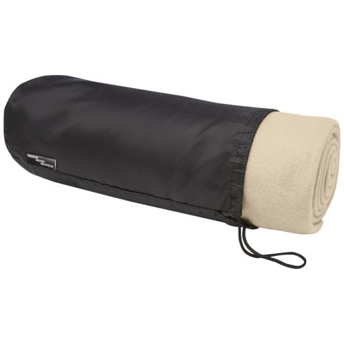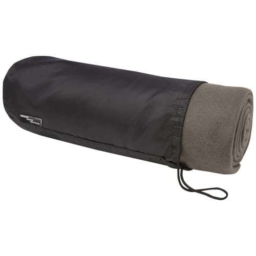 Koc polarowy z plastiku z recyklingu nadaje się do użytku w domu i na zewnątrz. W komplecie z torbą z plastiku 190T z recyklingu z zamknięciem na sznurek. Pakowane w torebkę z polietylenu pochodzącego z recyklingu. Wymiary torby: długość 34 cm, średnica 13 cm.