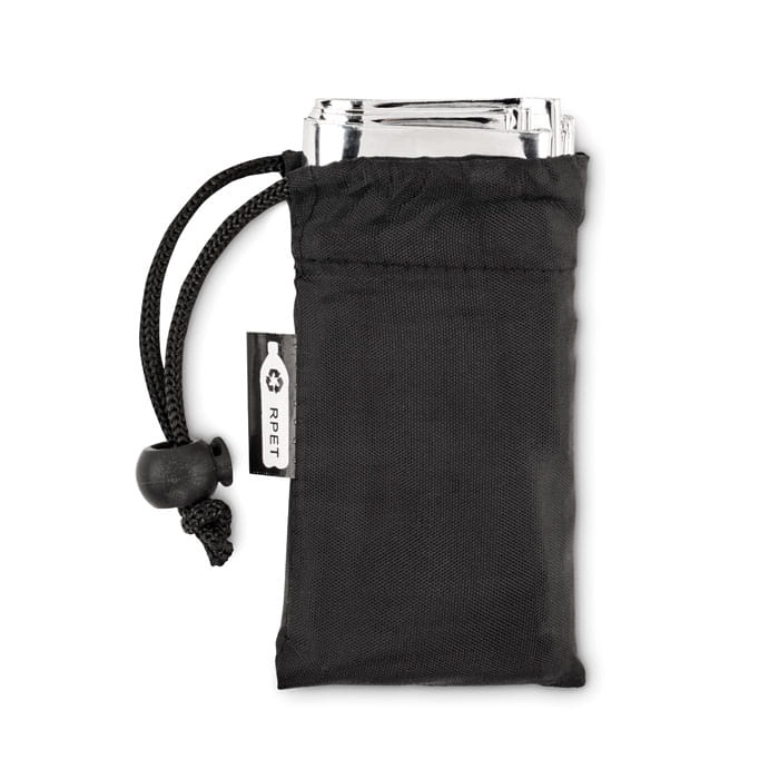 Koc ratunkowy w pokrowcu z poliestru RPET. Koc o wymiarach: 130 x 210 cm.