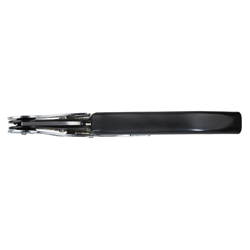 Wykonany ze stali nierdzewnej dwustopniowy korkociąg z nożykiem do obcinania folii.