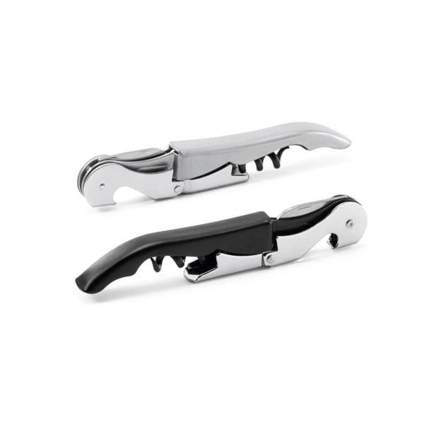 Korkociąg. Metal. Zawiera otwieracz do butelek i nóż.