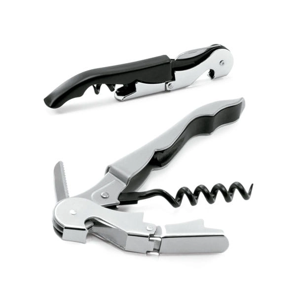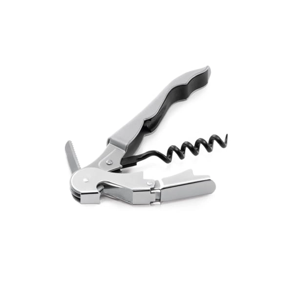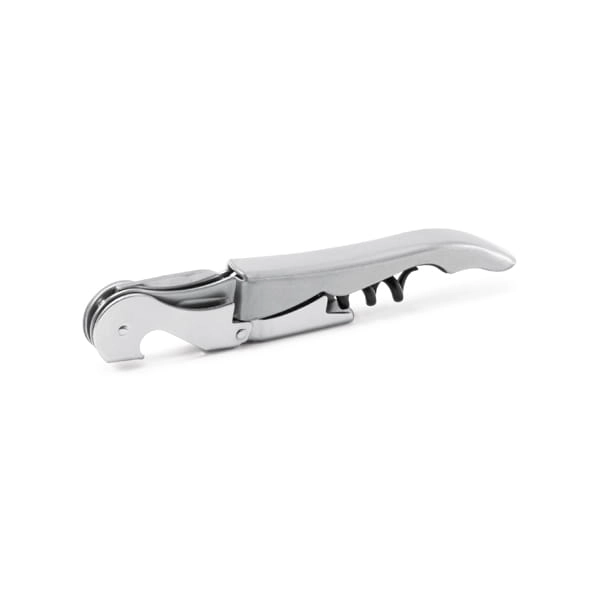 Korkociąg. Metal. Zawiera otwieracz do butelek i nóż. Spirala ze stali nierdzewnej.