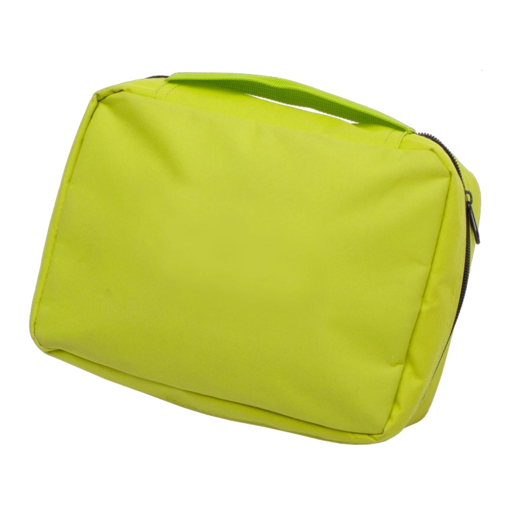 Nadzwyczaj praktyczna, trwała i pojemna kosmetyczka zamykana na zamek. Wyposażona w haczyk, dwie kieszonki z siatki zamykane na zamek i cztery otwarte, głębokie przegródki.