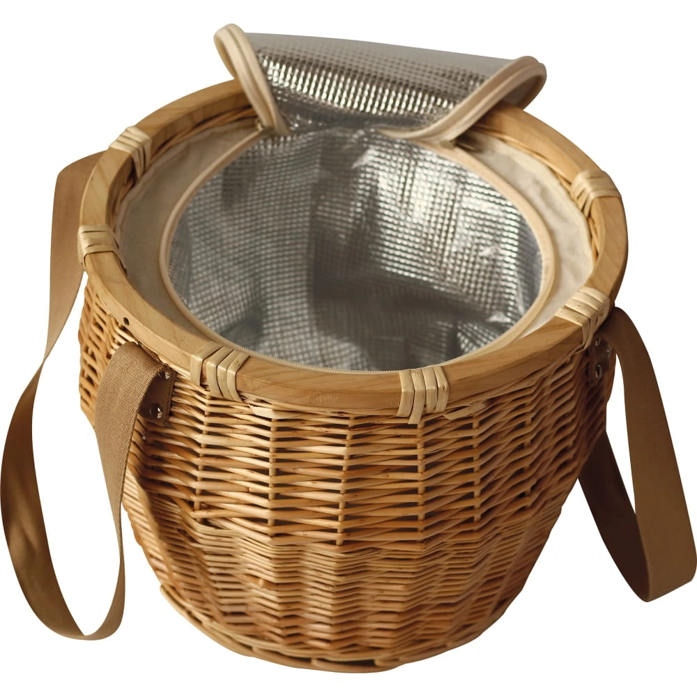 Kosz piknikowy o unikalnym kształcie z dużą powierzchnią chłodząca. Bambusowe wieczko może służyć jako taca lub deska do krojenia.