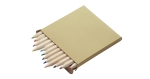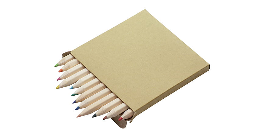 Drewniane kredki w dwunastu kolorach. Zapakowane w poręczny kartonik z okienkiem. Logo nadrukujemy na kartoniku.