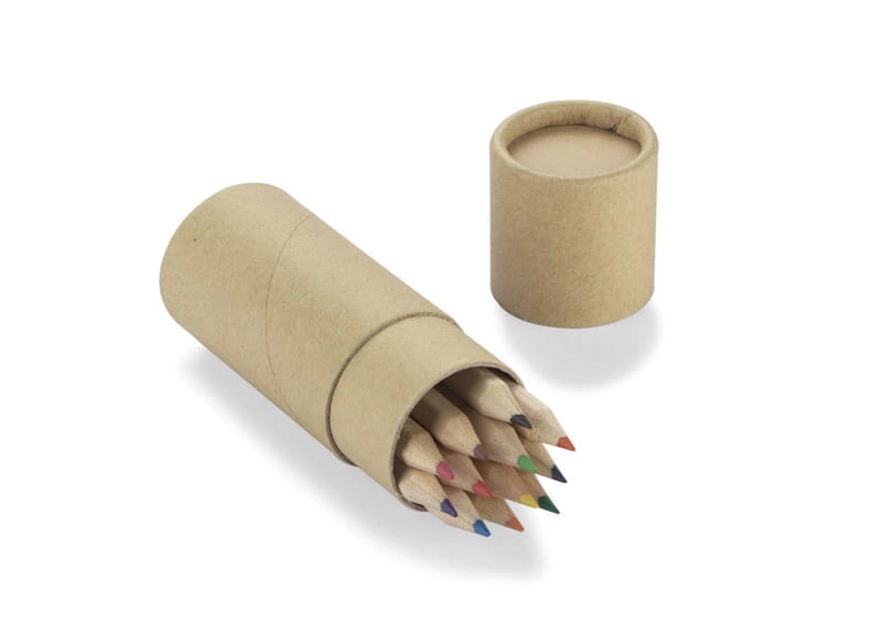 Zestaw REDKO to 12 drewnianych kredek zapakowanych w tekturową tubę.
