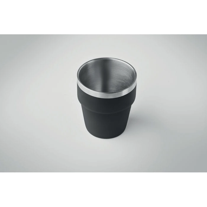 Kubek z podwójnymi ściankami ze stali nierdzewnej pochodzącej z recyklingu (90% stali nierdzewnej pochodzącej z recyklingu i 10% stali nierdzewnej). Pojemność: 250 ml.