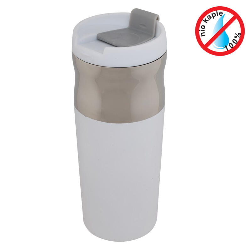 Szczelny kubek izotermiczny – termos o pojemności 450 ml. Z próżnią między dwiema ściankami ze stali nierdzewnej. Wewnątrz stal 18/8 o podwyższonej jakości.