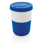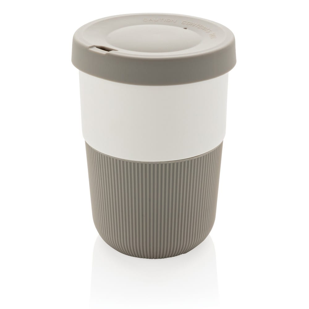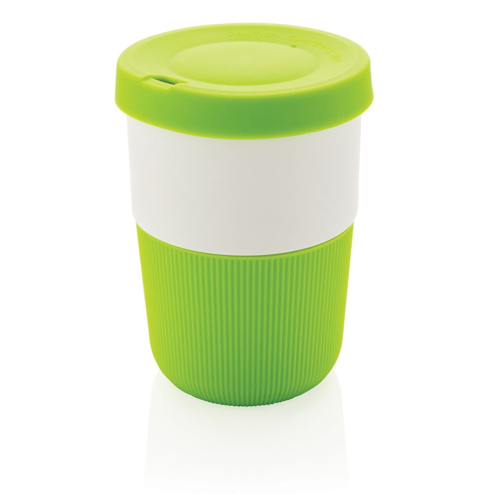 Ekologiczny kubek podróżny 380 ml, wykonany z PLA, silikonowe wieczko i uchwyt, nie zawiera melaminy