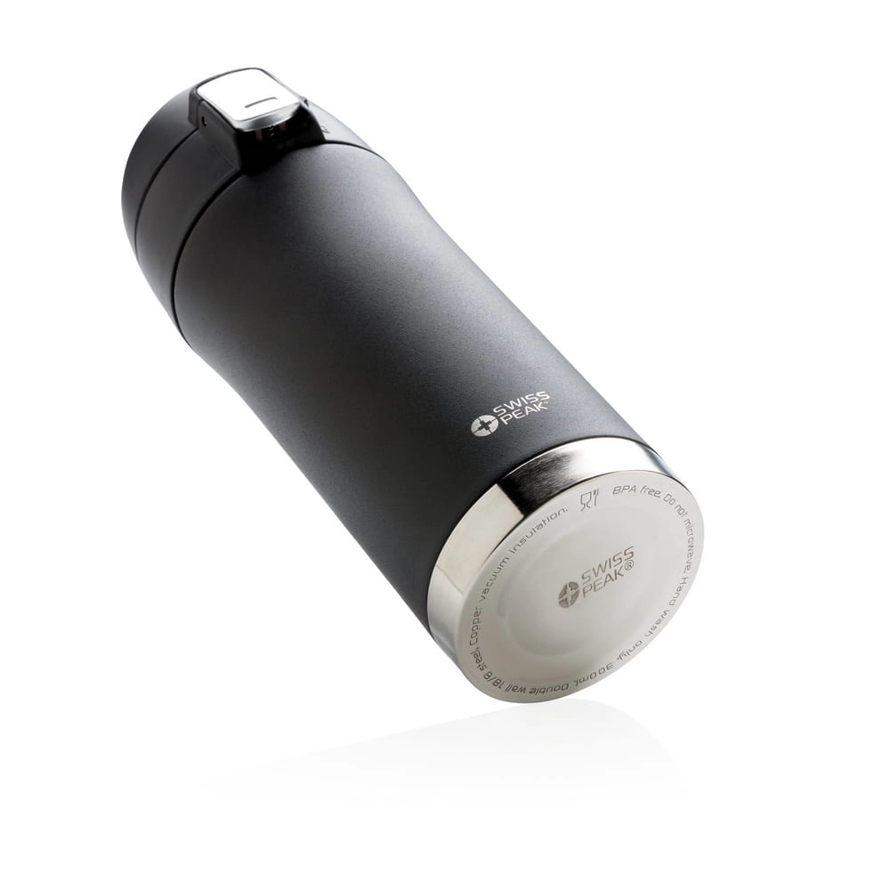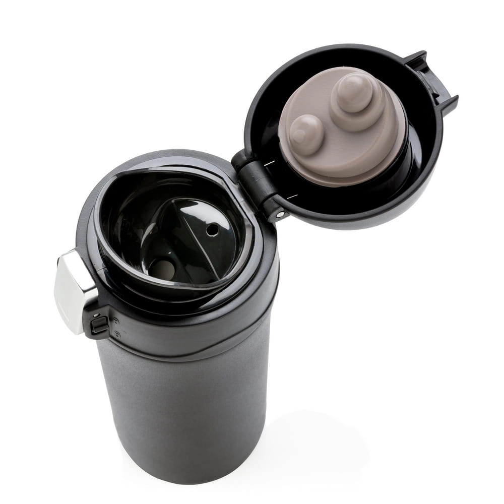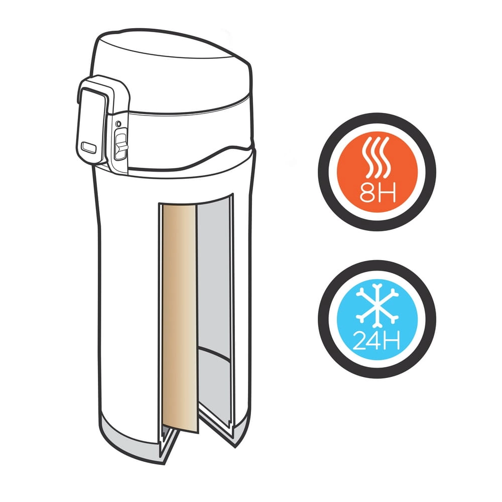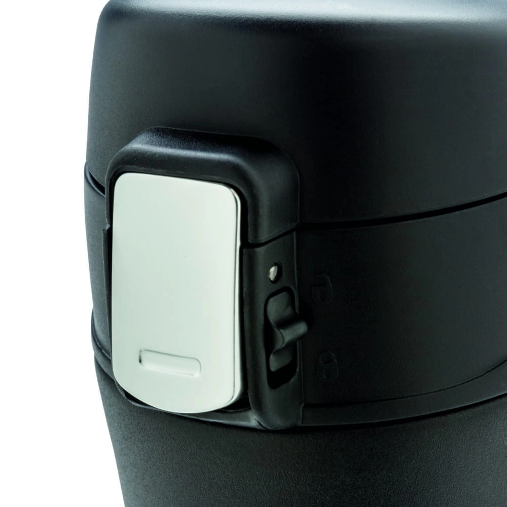 Kubek termiczny 300 ml, podwójne ścianki z próżnią między ściankami, wnętrze ze stali nierdzewnej 18/8, powlekany proszkowo czarny kolor cechujący się niezwykłą trwałością i odpornością na wyblaknięcie czy popękanie, ściana wewnętrzna pokryta miedzią o wysokim poziomie przewodnictwa, utrzymuje temperaturę napojów ciepłych do 8 godzin oraz zimnych do 24 godzin, szczelny, zamykane wieczko, wyłącznie mycie ręczne, klasa termiczna: 4
