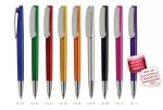 Satynowy korpus i błyszczący metalowy klip, błyszcząca końcówka i wierzchołek długopisu.