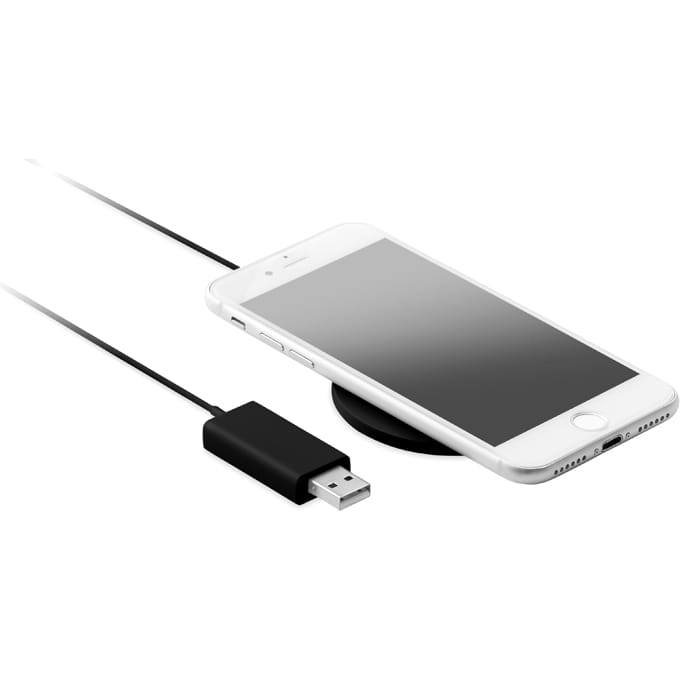 Ultracienka bezprzewodowa ładowarka. Wyjście: DC 5 V / 2 A do szybkiego ładowania. Kompatybilne najnowsze androidy, iPhone® 8, X i nowsze.