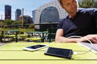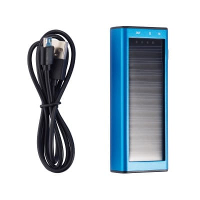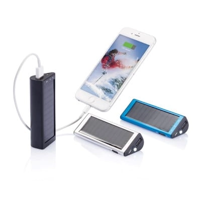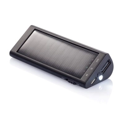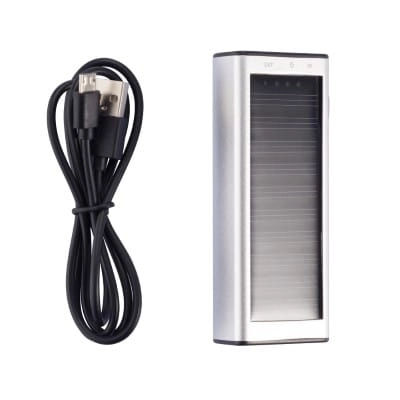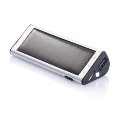 Kompaktowy power bank 2200 mAh ze zintegrowanym panelem słonecznym. Może być ładowany zarówno przez promienie słoneczne, jak i przez USB. Wyjście 5V/1A, wejście 5V/800 mA.