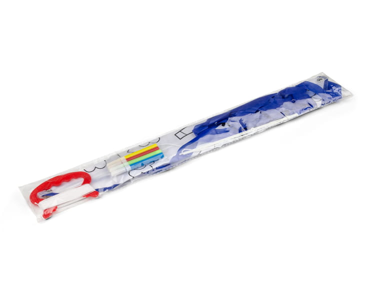 Latawiec do samodzielnego montażu zapewni sporą dawkę dobrej zabawy dla całej rodziny. Ozdobiony został nadrukiem, który można pokolorować według własnego pomysłu za pomocą 4 dołączonych pisaków. W zestawie znajdują się metalowe drążki, latawiec, ogon oraz linka o długości 30 metrów nawinięta na uchwyt.