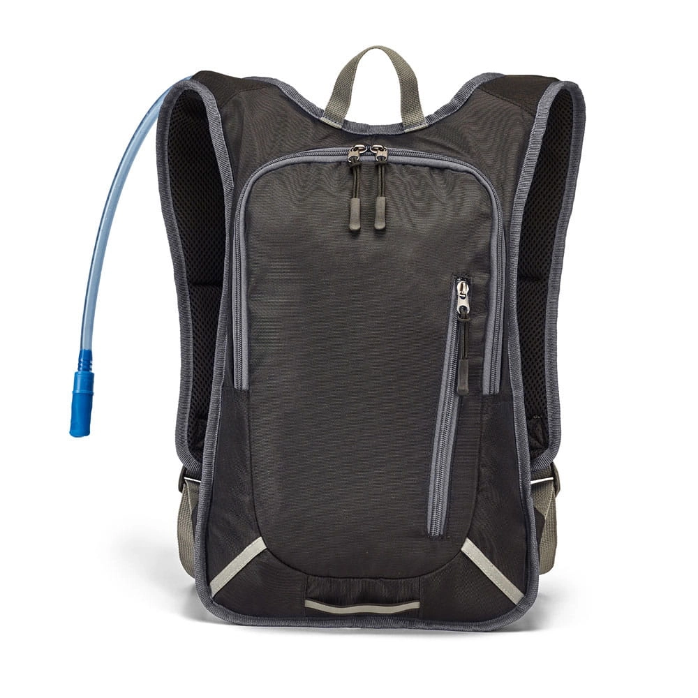 Plecak sportowy 420D. Ten plecak ma komorę główną i przednią kieszeń zapinaną na zamek. Ten plecak ma panel przedni z paskiem odblaskowym, który można również wykorzystać jako pasek. Uchwyty są wyściełane, z tyłu siatka i karabińczyk w głównej torbie zwykle mieszczą butelkę z wodą.