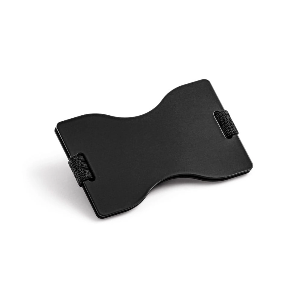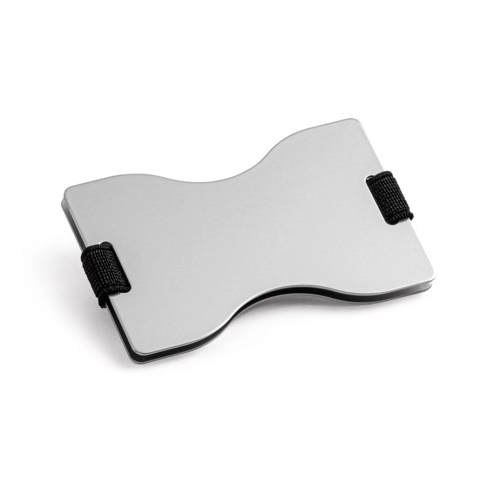 Aluminiowy uchwyt na kartę z zamkiem RFID i elastycznym paskiem poliestrowym. Ten uchwyt karty ma matowe wykończenie i pojemność 12 kart.