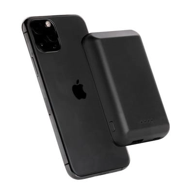 Magnetyczny, bezprzewodowy power bank 5000 mAh, ładowarka bezprzewodowa 5W, wyjście USB do ładowania za pomocą kabla, 11 wbudowanych magnesów N52H odpornych na ciepło, dzięki idealnemu rozłożeniu magnesów power bank jest kompatybilny z telefonem iPhone 12, w przypadku urządzeń Android działa jak standardowa ładowarka bezprzewodowa, działa z telefonami posiadającymi możliwość ładowania indukcyjnego, wejście 5V/1.5A, wyjście 5V/1A, 100 cm kabel micro USB z TPE w komplecie, nie zawiera PVC