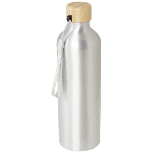 Butelka na wodę z aluminium pochodzącego z recyklingu z certyfikatem RCS, ze stylową bambusową pokrywką. Ta lekka, jednościenna butelka jest wyposażona w pasek ułatwiający przenoszenie. Bambus pochodzi ze zrównoważonych, ekologicznie i społecznie odpowiedzialnych źródeł. Pojemność 770 ml. Tylko do mycia ręcznego.