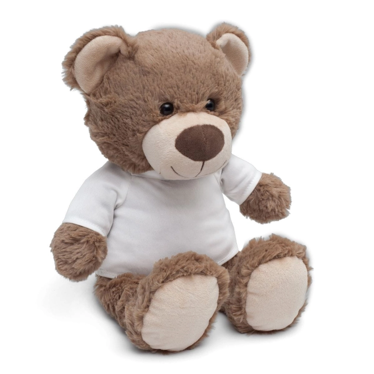 Duża pluszowa maskotka w kształcie misia w koszulce.