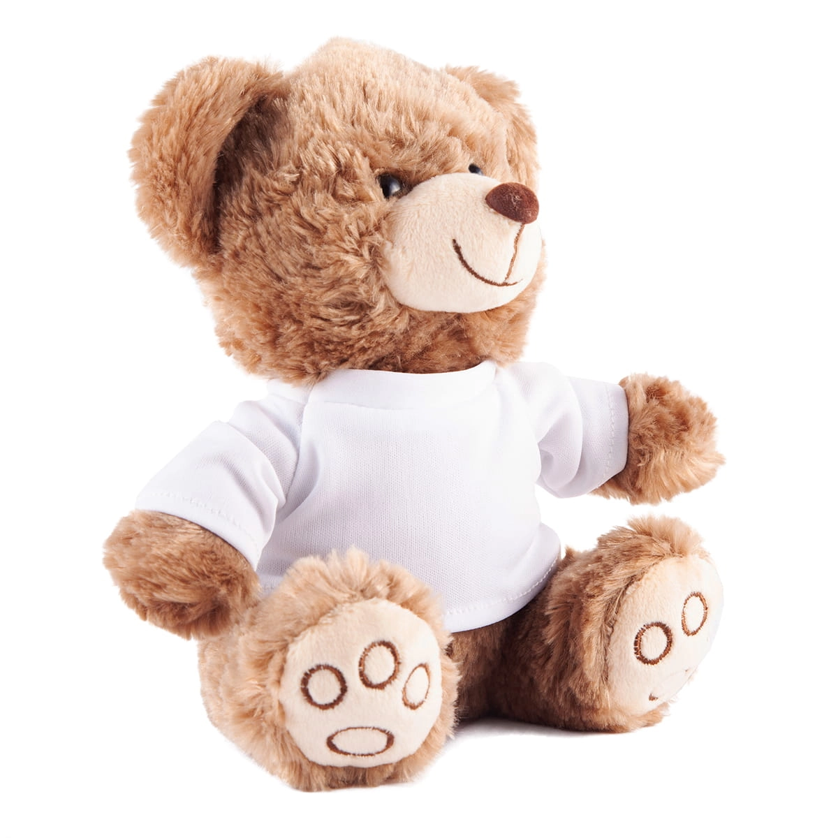 Maskotka przytulanka dla dzieci w białej koszulce, na której można wykonać znakowanie.