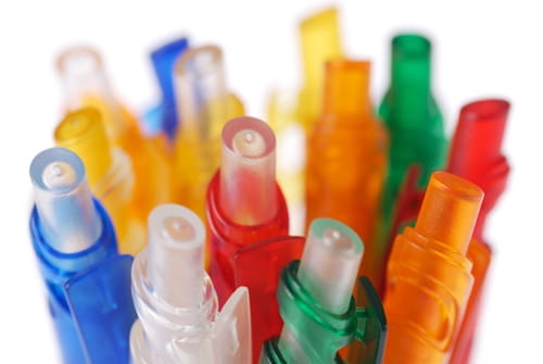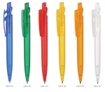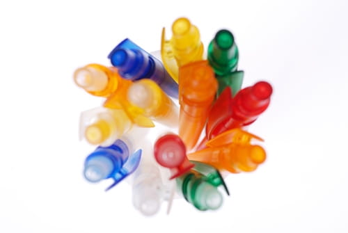 Kolorowy transparentny klip, przycisk i korpus.