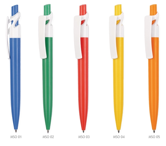 Biały pełny klip, kolorowy pełny przycisk i korpus.