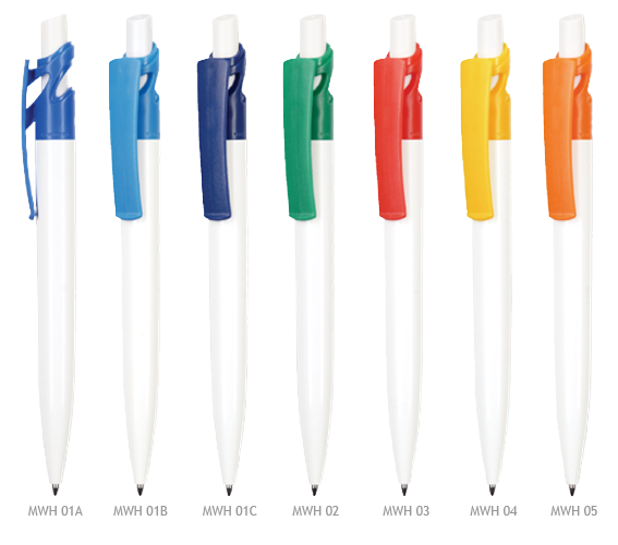 Kolorowy pełny klip, biały pełny przycisk i korpus.