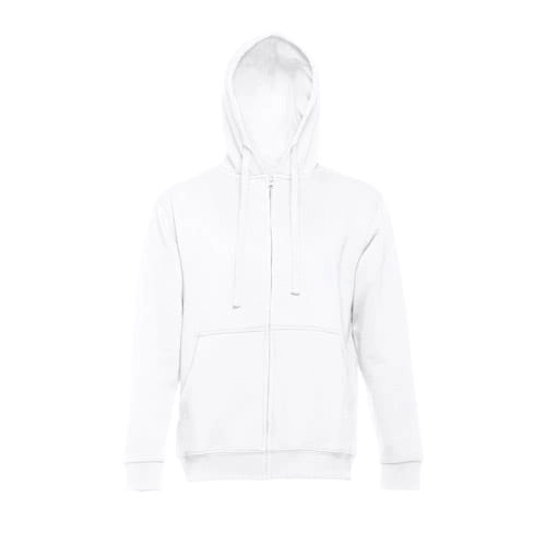 Bluza męska z 50% bawełny i 50% poliestru (320 g/m?) ze zgrzebnym wnętrzem. Posiada wyściełany kaptur oraz zamknięcie na kolorowy sznurek. W przedniej części znajdują się dwie kieszenie kangurki z plastikowym zamknięciem. Produkt zawiera mankiety i taśmę w pasie