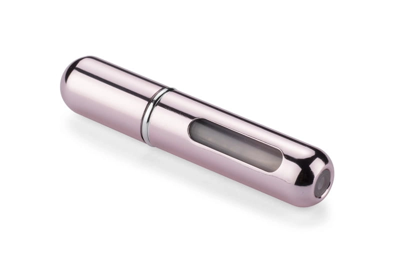Mini perfumetka to gadżet który sprawdzi się idealnie w podróży jak i na co dzień. W prosty i szybki sposób możemy napełnić buteleczkę ulubioną perfumą lub płynem do dezynfekcji. Wystarczy dół buteleczki przyłożyć do atomizera wybranego płynu i delikatnym ruchem poprzez naciśnięcia napełnić perfumetkę. Pojemność butelki 5ml.
